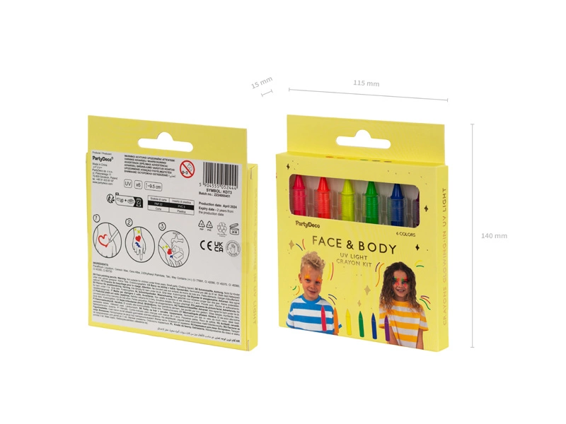 Pro Tip: Nałóż kredki na twarz lub ciało, a następnie użyj lampy UV, aby uzyskać spektakularny efekt świecenia.