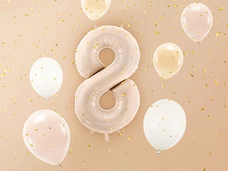 Dodaj wyjątkowy akcent do swojej imprezy z naszym balonem foliowym w kształcie cyfry "8". Ten elegancki, ciemnobeżowy balon o matowym wykończeniu doskonale sprawdzi się na urodzinach, rocznicach czy innych jubileuszach, tworząc niezapomnianą atmosferę.