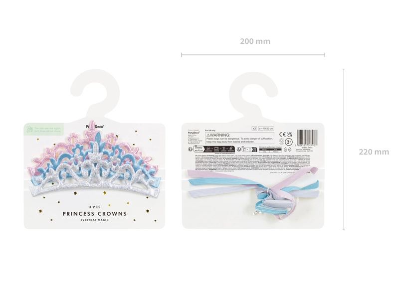 - Kolor: Korony dostępne są w trzech uroczych kolorach: błękitnym, różowym oraz srebrnym, co pozwala na dopasowanie ich do różnych motywów imprezowych.
