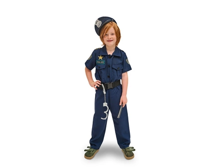 - Kompletny zestaw zawiera: czapkę, koszulę zapinaną na guziki, spodnie, regulowany pas, kajdanki oraz radio.