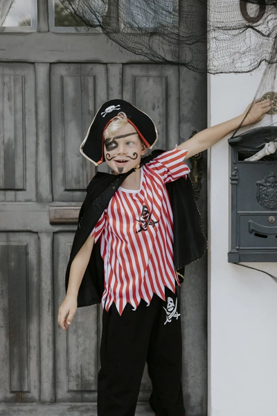 Upewnij się, że strój jest dobrze dopasowany, aby dziecko mogło swobodnie się poruszać. Dodaj do zestawu plastikowy miecz lub lunetę, aby dopełnić piracki wygląd.