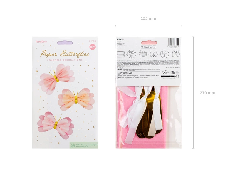 Dodaj magii i koloru do swojej imprezy dzięki naszym dekoracjom bibułowym w kształcie motyli! Te piękne ozdoby są idealne na wesela, urodziny, baby shower czy walentynki. Zestaw zawiera trzy motyle w różnych kolorach, które z pewnością przyciągną uwagę każdego gościa.