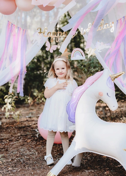 Połącz balon jednorożec z innymi balonami w pastelowych kolorach, aby stworzyć spójną i harmonijną dekorację.