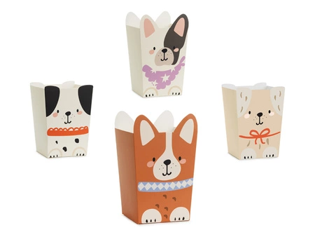 Pudełka na popcorn Pieski, 8,7x8,7 cm, mix (1 op. / 6 szt.)