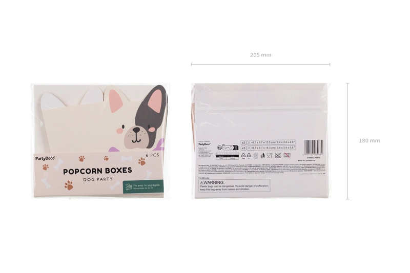 Dodaj odrobinę uroku i zabawy do swojej imprezy z naszymi pudełkami na popcorn w urocze pieski! Te kolorowe pudełka są idealne na urodziny, wieczory panieńskie, baby shower, czy każdą inną okazję, gdzie chcesz zaskoczyć swoich gości. W zestawie znajdziesz sześć pudełek, które z pewnością przyciągną uwagę i wywołają uśmiech na twarzach Twoich gości.