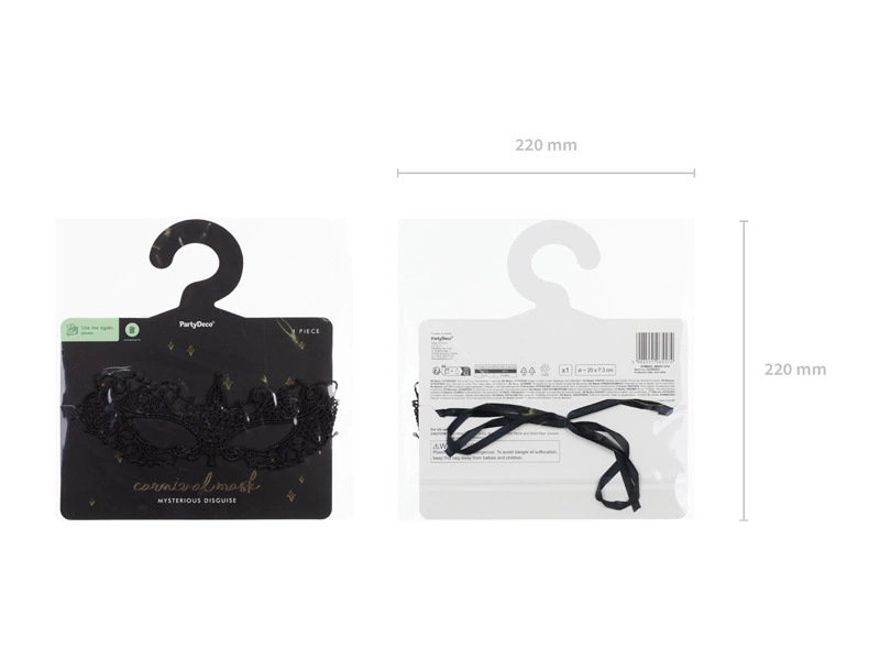 Nasza maska karnawałowa wykonana jest z delikatnej czarnej koronki, co nadaje jej wyjątkowego uroku i elegancji. Mierzy około 7,3 cm wysokości i 20 cm szerokości, co sprawia, że doskonale dopasowuje się do twarzy, zapewniając komfort noszenia przez całą noc.