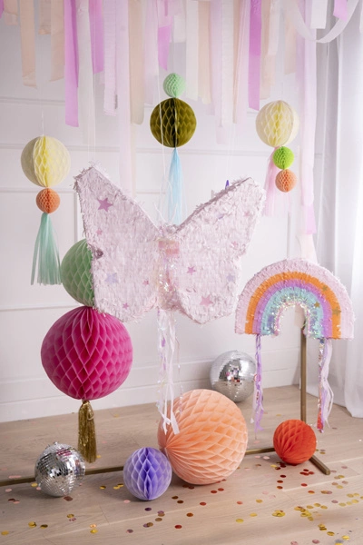 Dodaj odrobinę magii i koloru do swojej imprezy z naszą piniatą w kształcie tęczy! Idealna na urodziny, baby shower czy wieczór panieński, ta piniata stanie się centralnym punktem każdej zabawy. Wypełnij ją ulubionymi słodyczami, małymi upominkami lub płatkami kwiatów, aby zaskoczyć swoich gości.