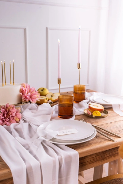 Ułóż bieżnik na środku stołu, a następnie dodaj świeże kwiaty lub świece, aby stworzyć romantyczną atmosferę. Możesz również połączyć go z innymi dekoracjami w podobnych odcieniach, aby uzyskać spójny wygląd.