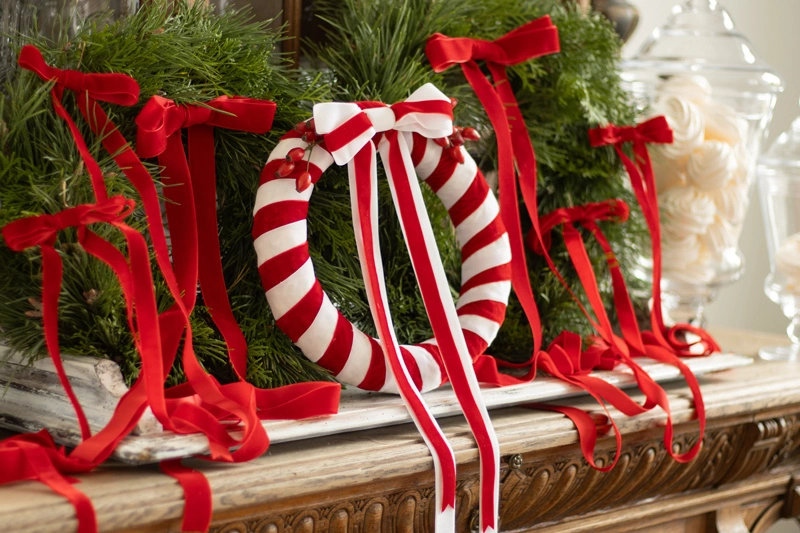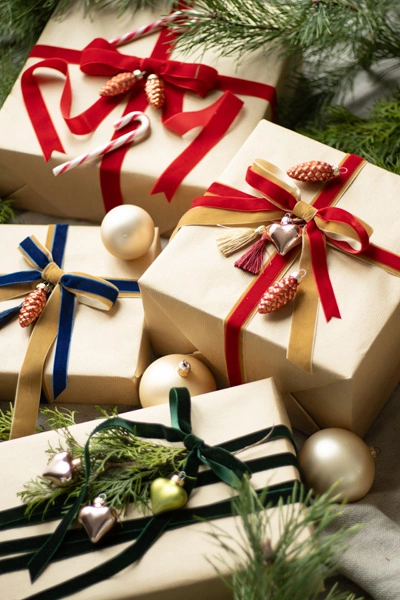 Połącz czerwoną tasiemkę z białymi lub złotymi elementami dekoracyjnymi, aby stworzyć klasyczny i elegancki wygląd.