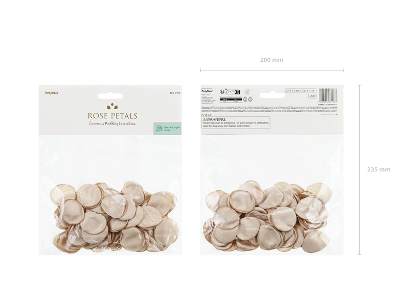 Nasze płatki róż są w delikatnym beżowym kolorze, co czyni je uniwersalnym dodatkiem do każdej dekoracji. Każde opakowanie zawiera 100 sztuk płatków, co pozwala na stworzenie efektownej aranżacji. Wykonane z wysokiej jakości materiałów, płatki są trwałe i wyglądają niezwykle naturalnie.