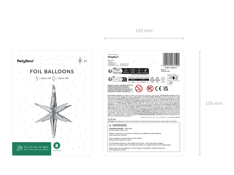 Przygotuj się na niezapomniane chwile z naszym balonem foliowym w kształcie gwiazdy 3D! Idealny na wesela, urodziny, czy sylwestrowe przyjęcia, ten srebrny balon doda blasku każdej imprezie. Jego elegancki wygląd i imponujący rozmiar sprawią, że stanie się centralnym punktem dekoracji.