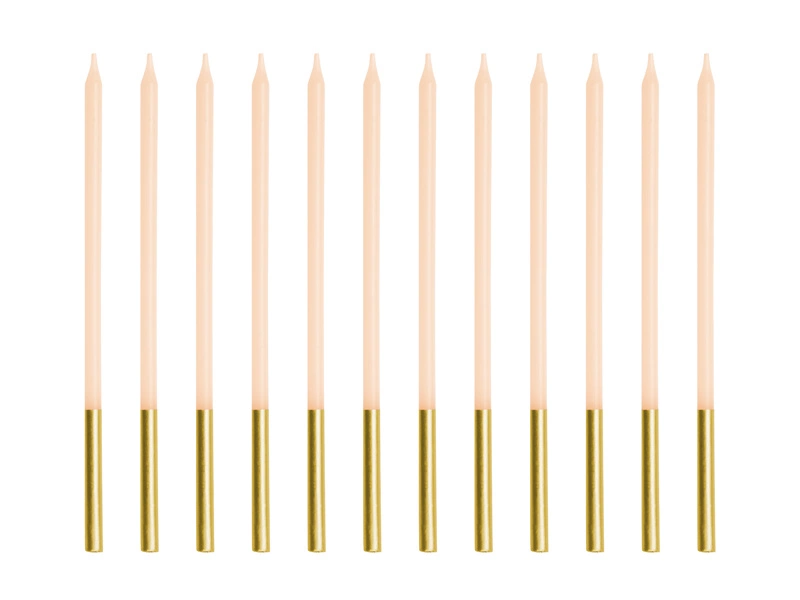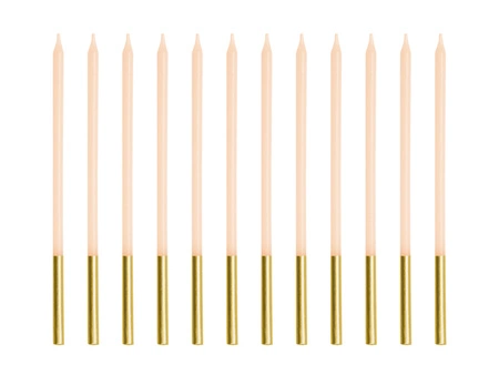 Świeczki urodzinowe gładkie, beżowy, 14 cm (1 op. / 12 szt.)