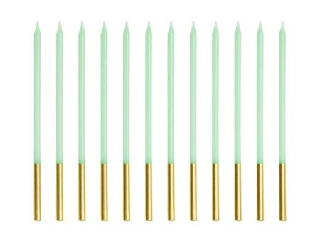 Świeczki urodzinowe gładkie, jasny zielony, 14 cm (1 op. / 12 szt.)