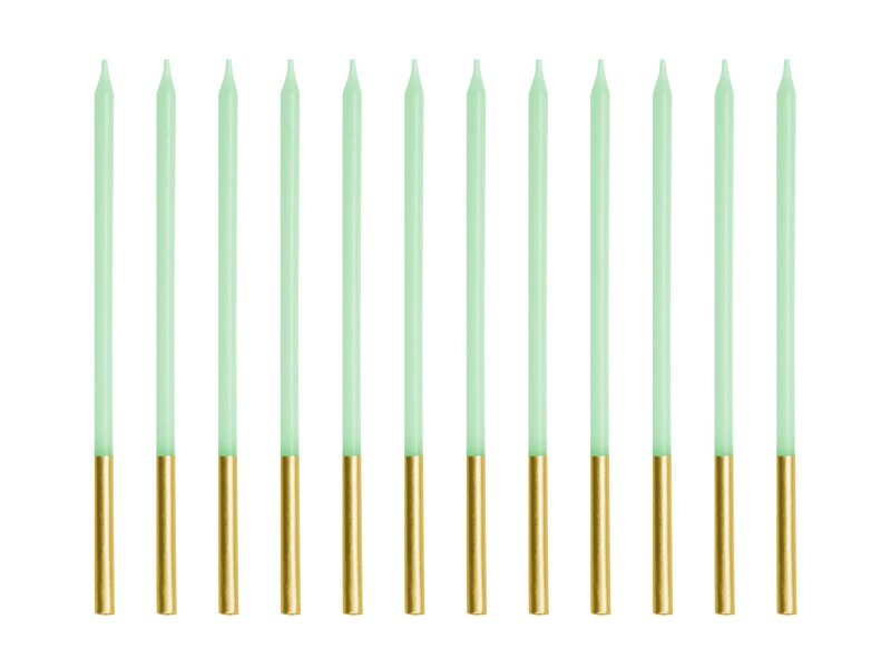 Stwórz niezapomnianą atmosferę na swojej imprezie urodzinowej dzięki naszym świeczkom w kolorze jasnozielonym. Te eleganckie, gładkie świeczki o wysokości 14 cm są doskonałym dodatkiem do każdego tortu, dodając mu wyjątkowego uroku i stylu. Zestaw zawiera 12 świeczek, co czyni go idealnym wyborem na każdą okazję.