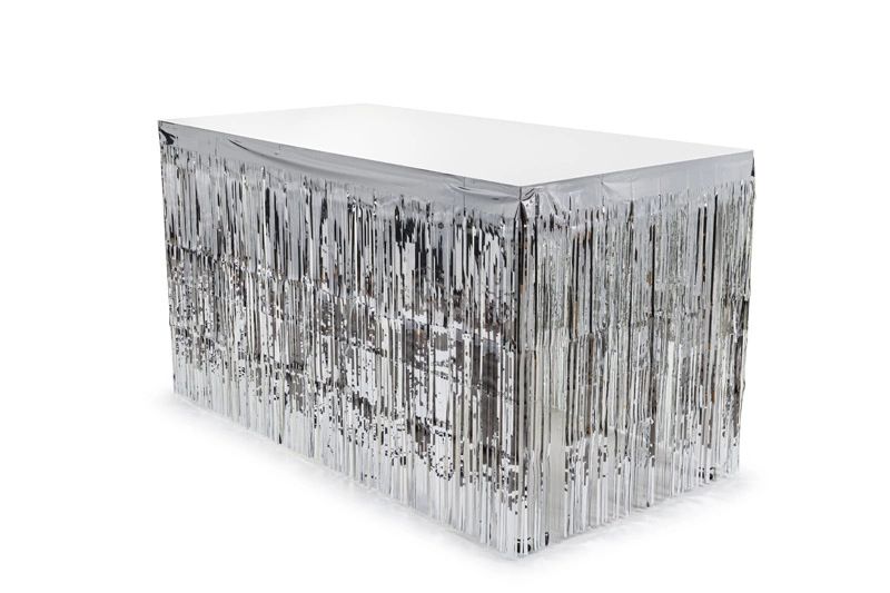 Przygotuj się na niezapomniane chwile podczas Twojej imprezy dzięki naszemu skirtingowi foliowemu z frędzlami w eleganckim srebrnym kolorze. Idealny na wesela, urodziny, czy wieczory panieńskie, ten dekoracyjny element doda blasku każdemu stołowi. Jego metalizowana powierzchnia odbija światło, tworząc magiczną atmosferę.