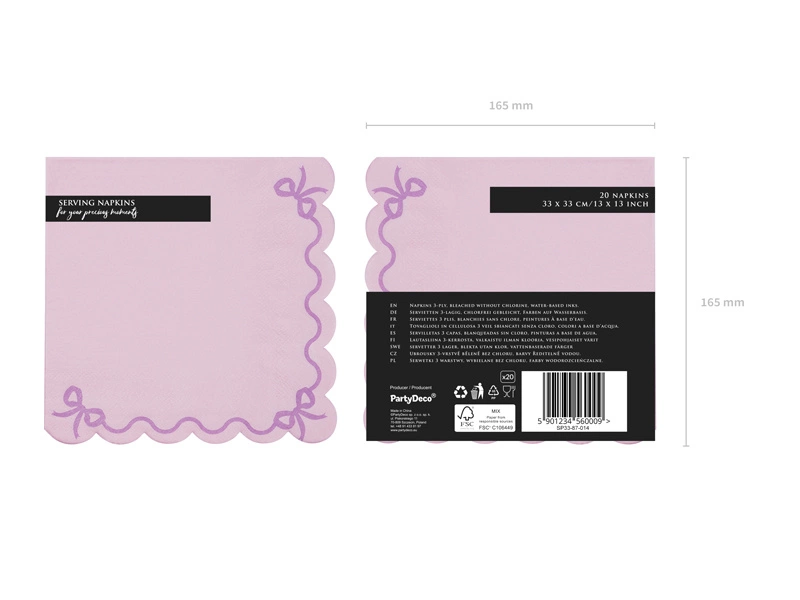 Przygotuj się na wyjątkowe chwile z naszymi eleganckimi serwetkami, które dodadzą uroku każdej imprezie, od wesela po baby shower. Te stylowe serwetki w kolorze fioletowym z falbanką i nadrukiem wstążki z kokardką są idealnym dodatkiem do Twojego stołu, podkreślając wyjątkowość każdej okazji.