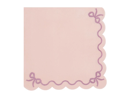 Idealne na eleganckie przyjęcia, te serwetki z falbanką w kolorze jasnoróżowym dodadzą uroku każdej uroczystości, od wesela po baby shower. Ich delikatny design z nadrukiem wstążki i kokardki sprawia, że są nie tylko praktyczne, ale i dekoracyjne.