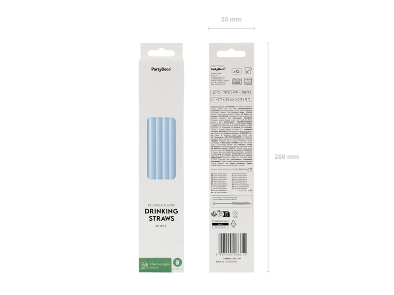Słomki plastikowe, 23 cm, błękitny (1 op. / 12 szt.)