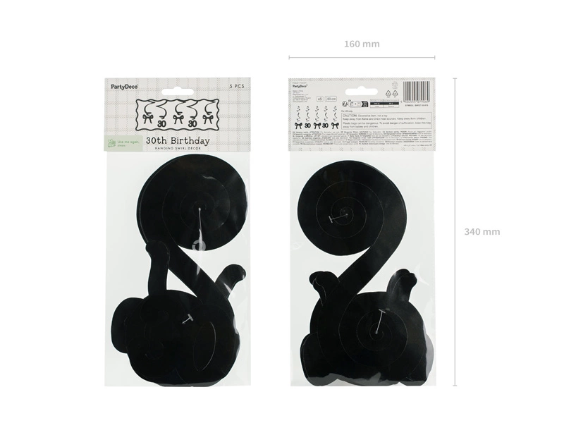 Świętuj swoje 30 urodziny z klasą dzięki naszym eleganckim czarnym świderkom, które dodadzą wyjątkowego charakteru każdej imprezie. Te stylowe dekoracje są idealne na urodziny, tworząc niezapomnianą atmosferę pełną radości i elegancji. Zestaw zawiera pięć świderków, które z łatwością można zawiesić w dowolnym miejscu.