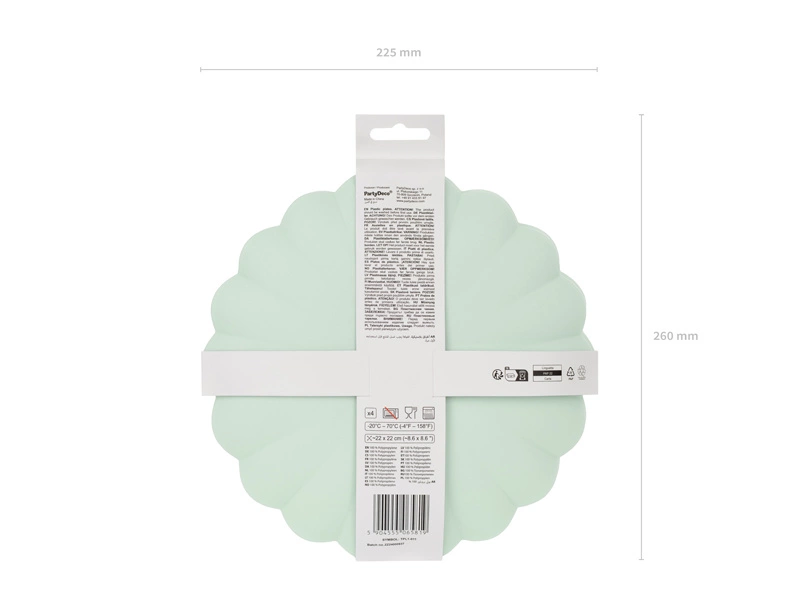 Talerzyki plastikowe Falbanka, szałwiowy, 22 x 22 cm, wielokrotnego użytku