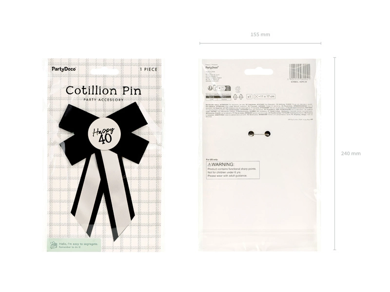 Świętuj swoje 40. urodziny z elegancją i stylem dzięki naszemu kremowo-czarnemu kotylionowi. Ten wyjątkowy dodatek sprawi, że poczujesz się wyjątkowo w tym szczególnym dniu. Idealny na przyjęcia urodzinowe, ten kotylion doda klasy każdej stylizacji.