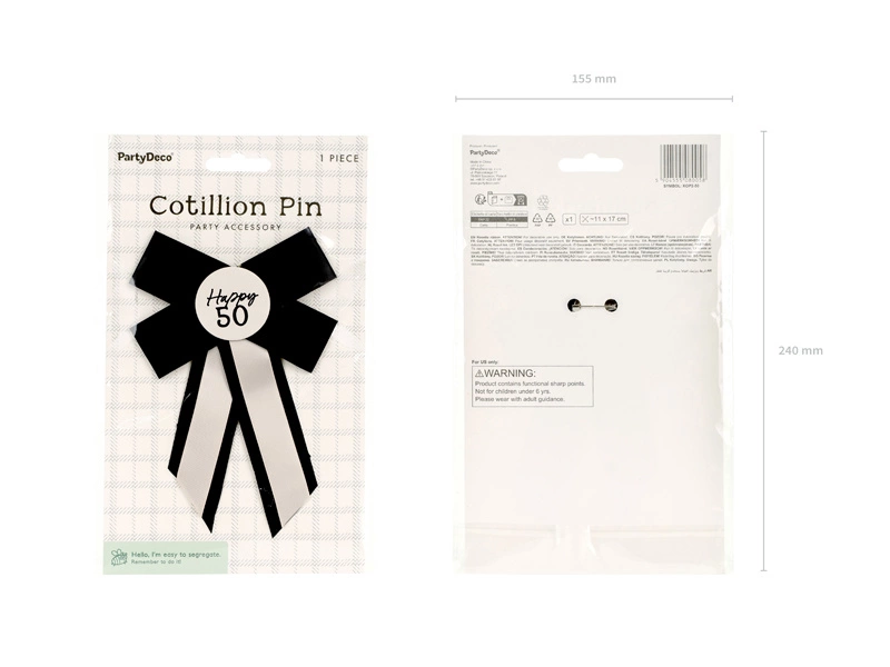 Świętuj swoje 50. urodziny z elegancją i stylem dzięki naszemu wyjątkowemu kotylionowi. Idealny na przyjęcia urodzinowe, ten kremowo-czarny kotylion doda klasy każdej uroczystości, podkreślając wyjątkowość tego dnia. Z łatwością przypniesz go do ubrania dzięki praktycznej agrafce.
