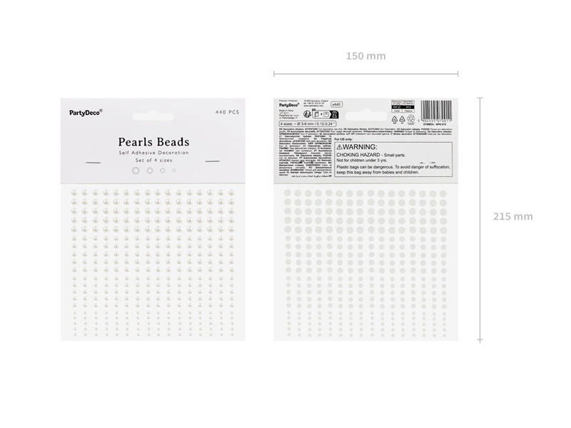 Naklejki Perełki, Perłowy, 440 sztuk, 4 Rozmiary, Samoprzylepne