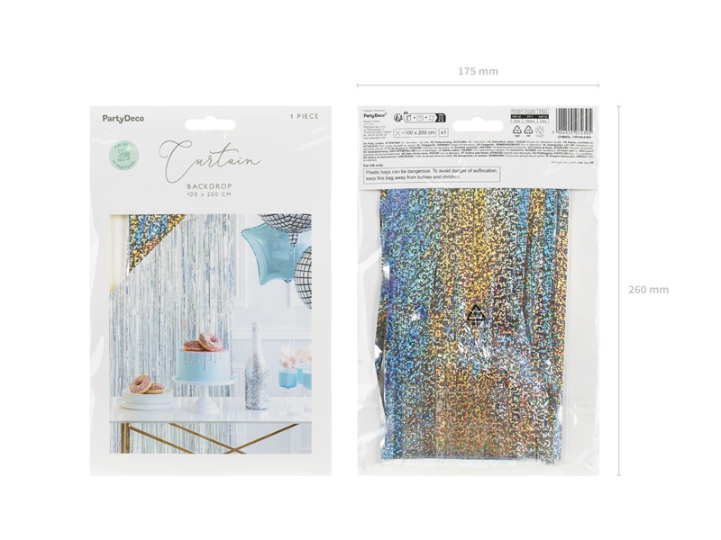 Stwórz niezapomnianą atmosferę na swojej imprezie dzięki tej olśniewającej kurtynie party w kolorze holograficznym. Idealna na wesela, wieczory panieńskie, urodziny, czy inne wyjątkowe okazje, ta dekoracja doda blasku i elegancji każdemu wydarzeniu.