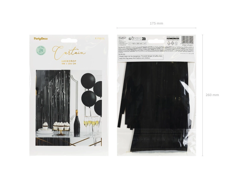 Stwórz niezapomnianą atmosferę na swojej imprezie dzięki naszej metalizowanej kurtynie w kolorze czarnym. Idealna na wieczory panieńskie, urodziny, Halloween czy eleganckie przyjęcia. Ta dekoracja doda blasku i stylu każdemu wydarzeniu, przyciągając wzrok gości i tworząc wyjątkowe tło do zdjęć.